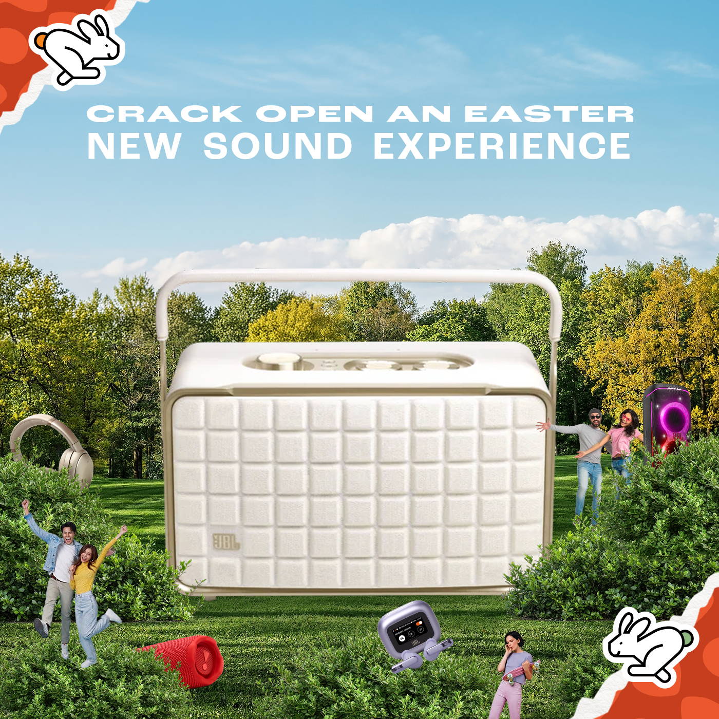 JBL Authentics 300 is a premium white retro speaker with a built-in battery. It delivers a wide, clear sound with deep bass. It is easy to carry with an aluminum handle. It is easy to use via Wi-Fi and Bluetooth and supports voice commands from Google Assistant and Amazon Alexa.